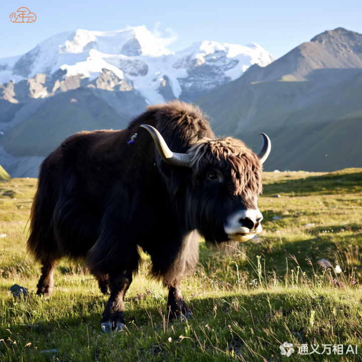 康定学生展示AI绘画作品:一头牦牛在雪山下漫步,毛发纹理清晰可见